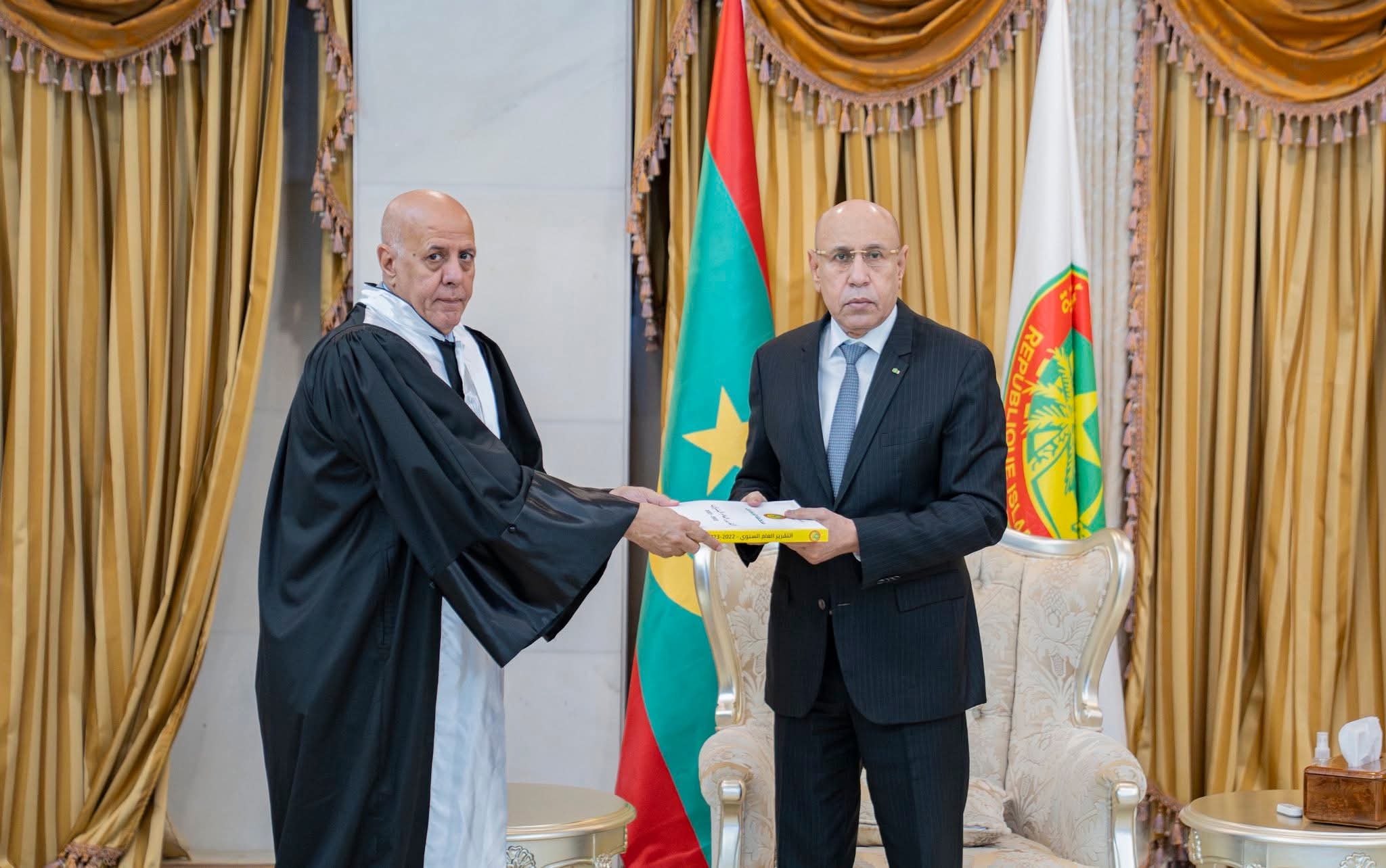فخامة رئيس الجمهورية، السيد محمد ولد الشيخ الغزواني، تسلّم صباح اليوم الأربعاء بالقصر الرئاسي في نواكشوط، التقرير السنوي العام لمحكمة الحسابات من رئيس المحكمة، السيد حميد ولد أحمد طالب.