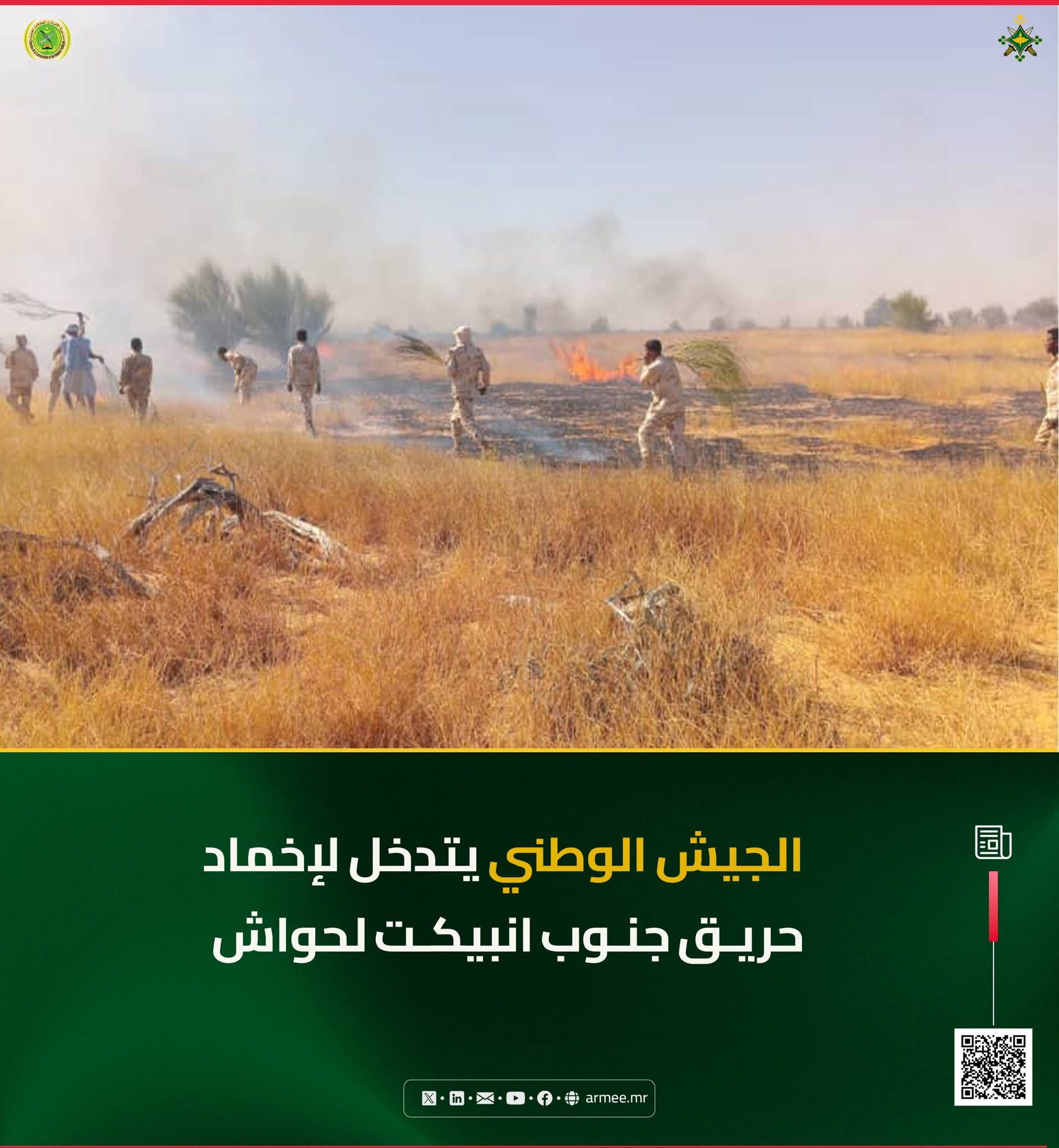 في إطار التدخلات الميدانية للجيش الوطني، نفذت الكتيبة الموريتانية للقوة المشتركة لدول الساحل الخمس، يوم الخميس 30 اكتوبر 2025، عملية ناجحة لإخماد حريق شبّ علي بعد 5 كلم غرب قرية آباگه، والتي تبعد حوالي 50 كلم جنوب بلدية انبيكت لحواش.