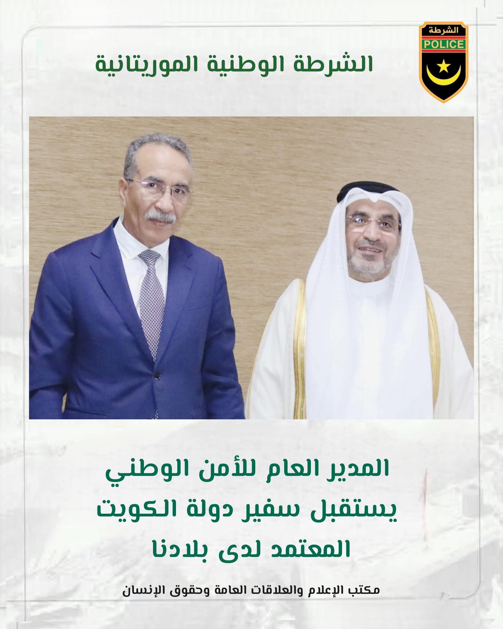 استقبل، اليوم الأربعاء 12 نفمبر 2025 الفريق محمد لحريطاني المدير العام للأمن الوطني في مكتبه سفير دولة الكويت الشقيقة المعتمد لدى بلادنا، سعادة السيد ابداح مقعد الدوسري.