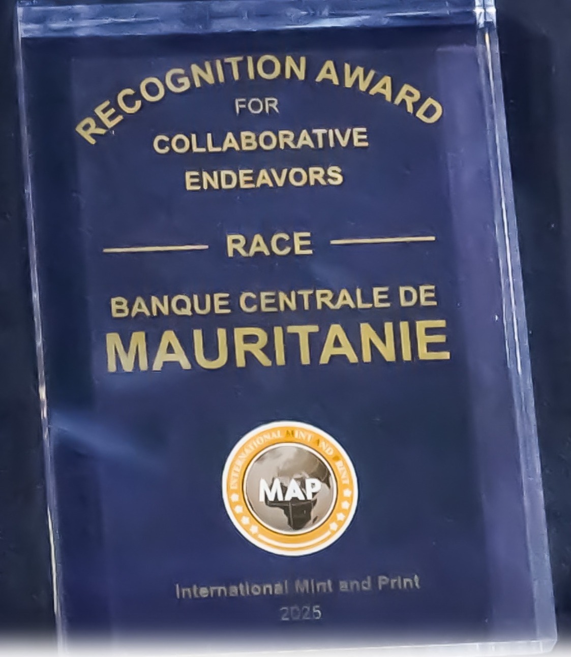 أعلن البنك المركزي الموريتاني فوزه بجائزة "الابتكار" خلال مؤتمر طباعة وسك العملة (MAP 2025) المنعقد في مدينة إسطنبول بتركيا، "تقديرا لجهوده الريادية في تحديث المنظومة النقدية، وإدارة الأوراق البنكية".
