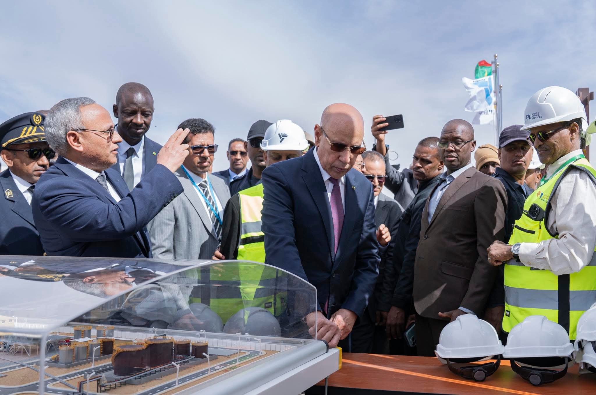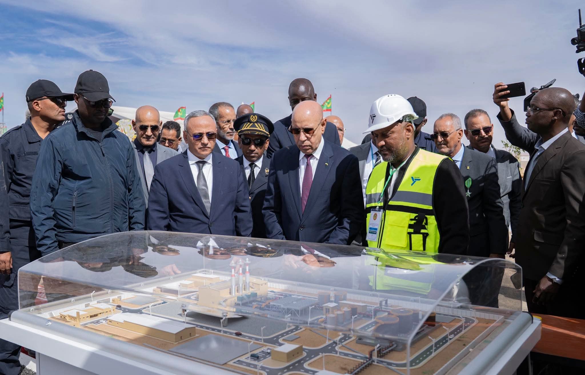 فخامة رئيس الجمهورية السيد محمد ولد الشيخ الغزواني، يقص الشريط الرمزي ويزيح الستار التذكاري إيذانا بتدشين محطة حرارية بقدرة 30 ميغاواط، في إطار الأنشطة المخلدة للذكرى ال 65 لعيد استقلالنا المجيد.
