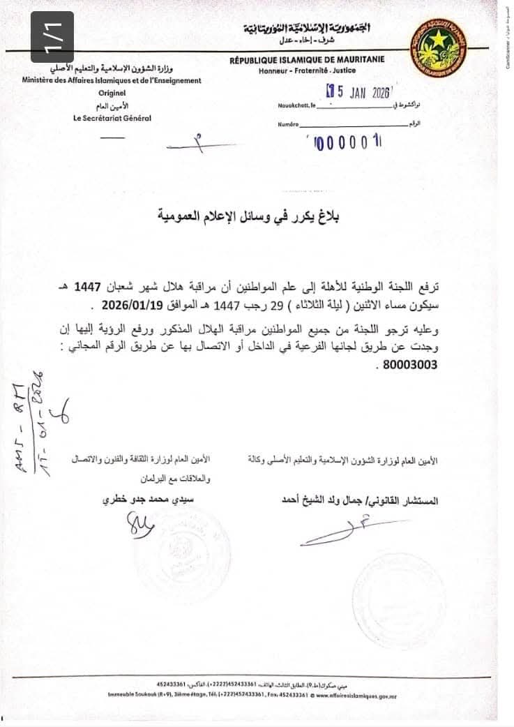 دعت لجنة الأهلة لمراعاة شهر شعبان من سنة 1447 مساء الإثنين أي ليلة الثلاثاء. وستعقد اللجنة اجتماعا بمباني وزارة الشؤون الإسلامية إلى حين إصدار بيان بشأن الرؤية أو عدمها.