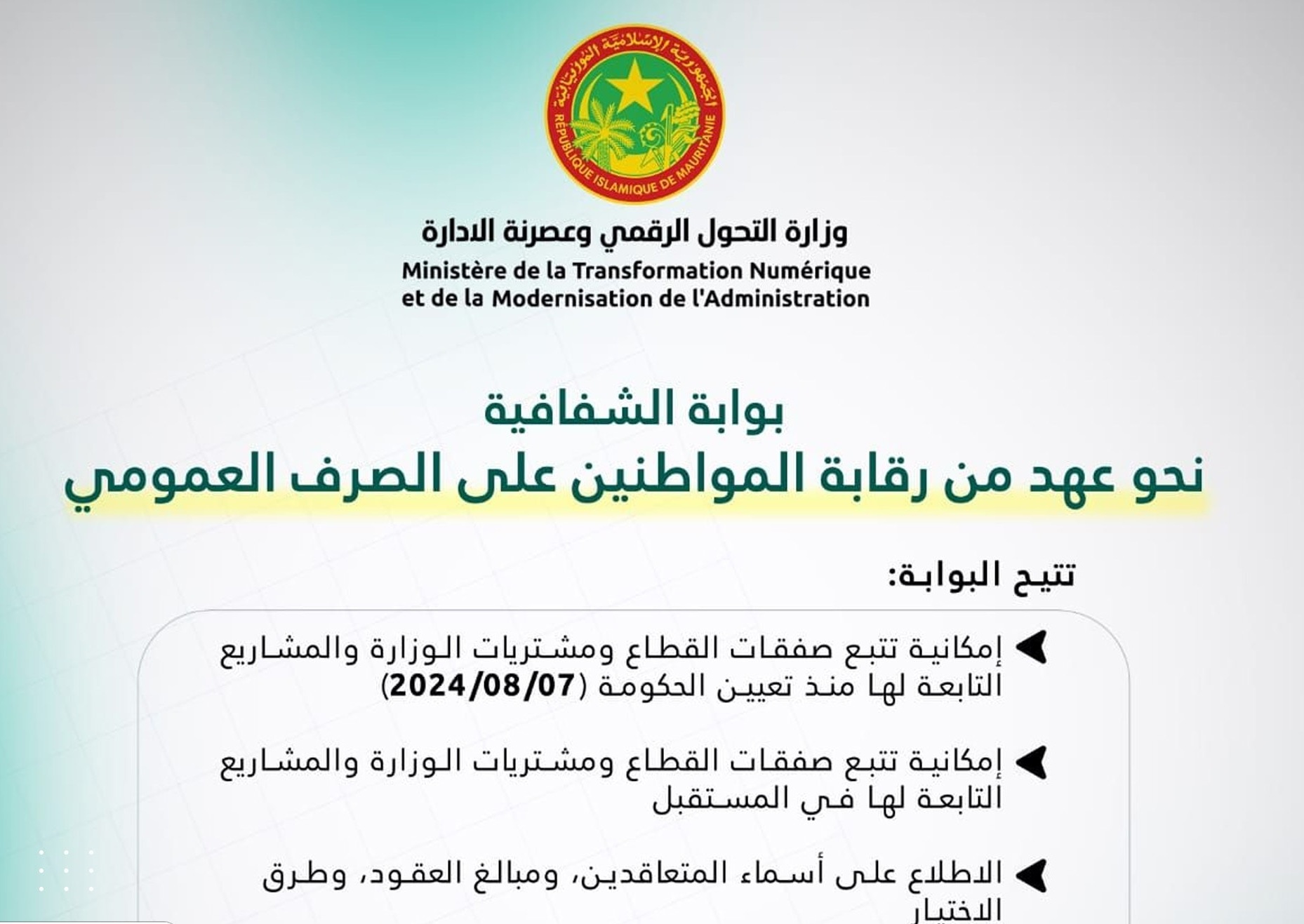 أطلقت وزارة التحول الرقمي وعصرنة الإدارة، أمس الأحد، بوابة رقمية جديدة مخصصة لنشر معلومات جميع الصفقات العمومية والنفقات المرتبطة بالوزارة ومؤسساتها التابعة.