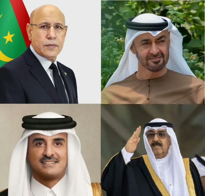هاتف الرئيس محمد ولد الغزواني الأحد رؤساء الإمارات العربية المتحدة محمد بن زايد، وقطر تميم بن حمد، والكويت مشعل الأحمد الجابر الصباح.