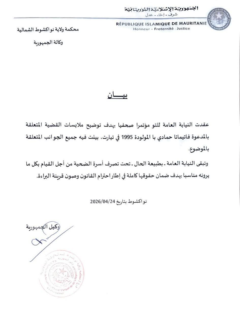 النيابة العامة تصدر بيانا بشأن القتيلة فاتيمتا با