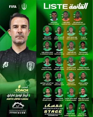 وتم اختيار القائمة من طرف المدرب لوبيز غاراي حيث يستعد المنتخب لخوض معسكر إعدادي لكأس العرب التي ستقام في قطر 2025 والتي يواجه فيها المنتخب الوطني نظيره الكويت في الملحق يوم 25 من الشهر الجاري في الدوحة .