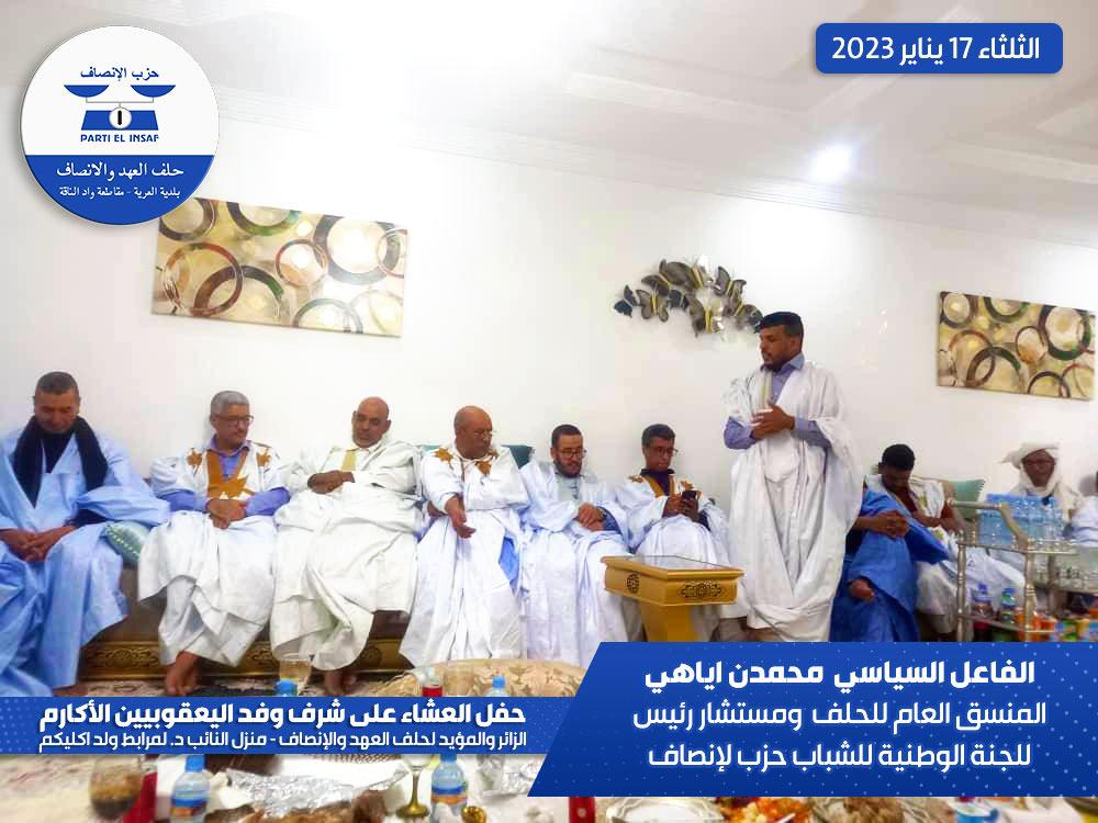 وأثناء حفل عشاء أقامه النائب الدكتور لمرابط ولد اكليكم على شرف مجموعة ممثلي "حواضر المجد" اليعقوبية وجد الحضور