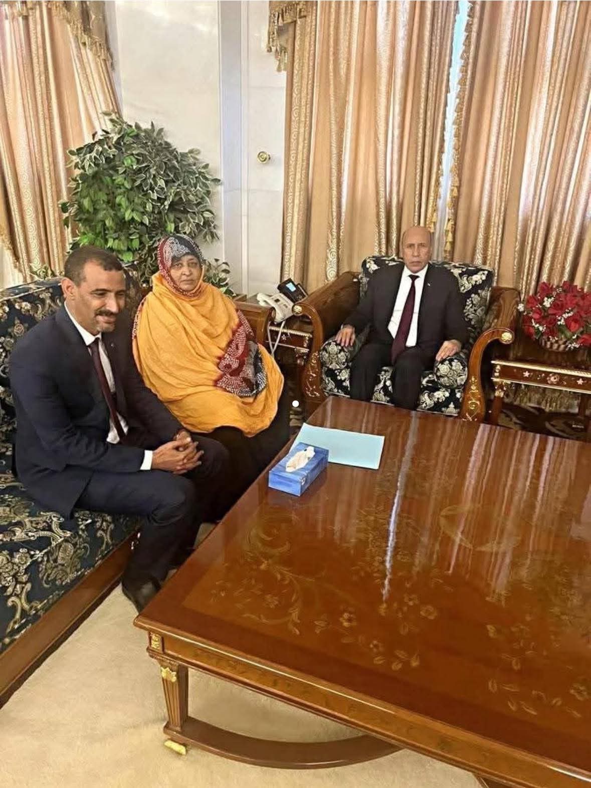 استقبل فخامة رئيس الجمهورية السيد محمد ولد الشيخ الغزواني اليوم في القصر الرئاسي أسرة الزميل إسحاق ولد المختار، فك الله أسره، واللجنة الإعلامية الموحدة للمتابعة والتنسيق في قضيته، ممثلتين في والدة الزميل، والأخ عبد الله ولد المختار، بحضور معالي وزير الثقافة، والاتصال، الحسين ولد مدو.